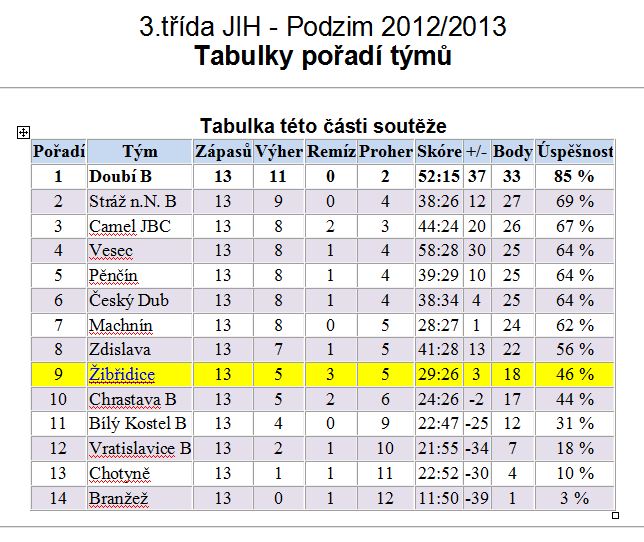 MUŽI "A" > Jak jsme hráli > Sezona 2012-2013