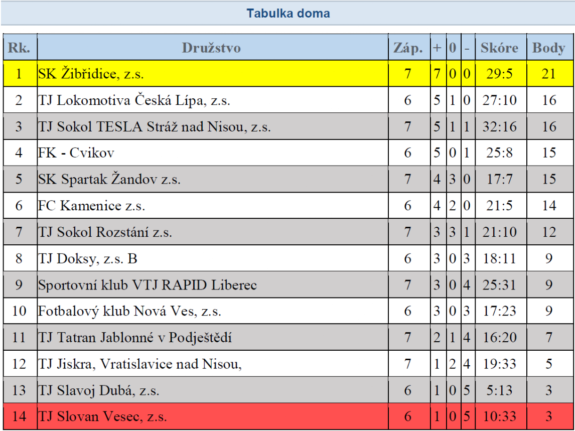 | Rapid Liberec | Žibřidice | 21.09. | 16:30 | SO | 3:9(1:7) | ||